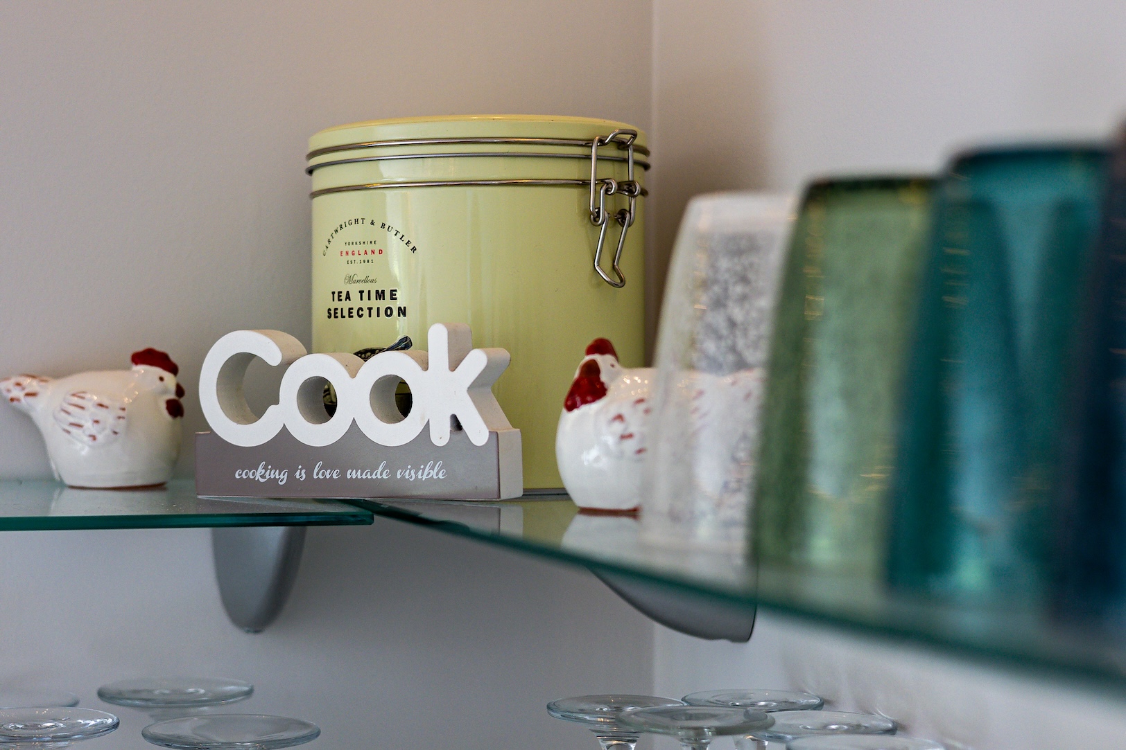 The kitchen has everything you need, we went out for dinner the first night (Fiona has listed lots of suggestions in the guide book – very helpful!) but the second night we cooked a meal and stayed home, it was lovely.